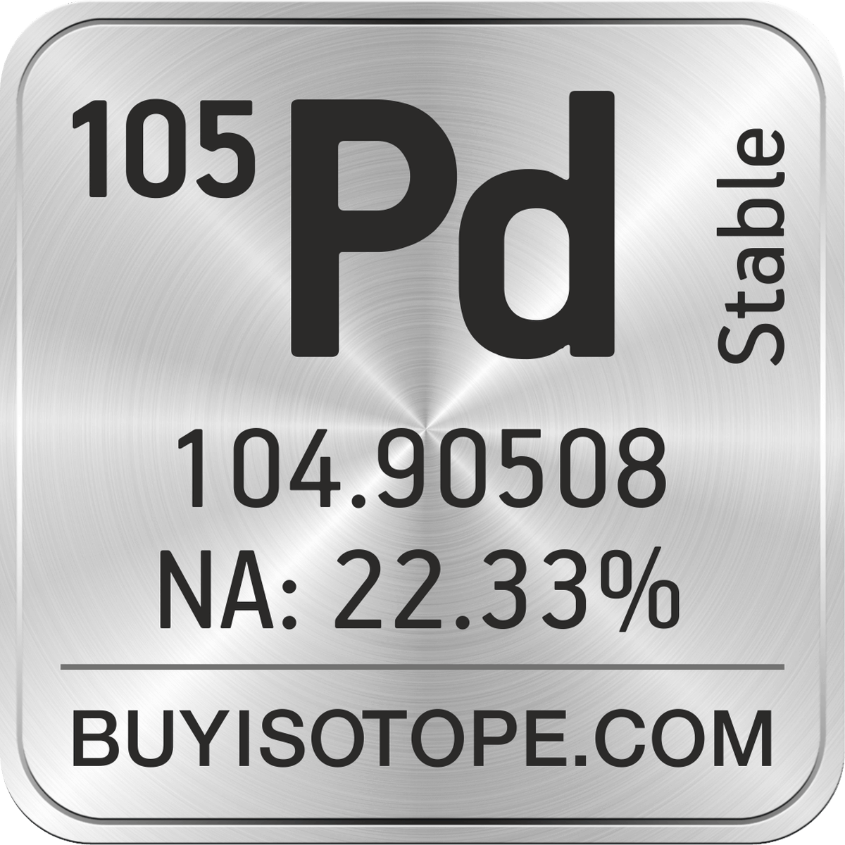 105Pd isotope is available to order from BuyIsotope.com in 105Pd metal ingot (Pd) chemical form and in 105Pd metal powder (Pd) chemical form. Please contact us via request a 105Pd quote BuyIsotope.com to order 105Pd isotope, to get 105Pd price and to buy 105Pd isotope.