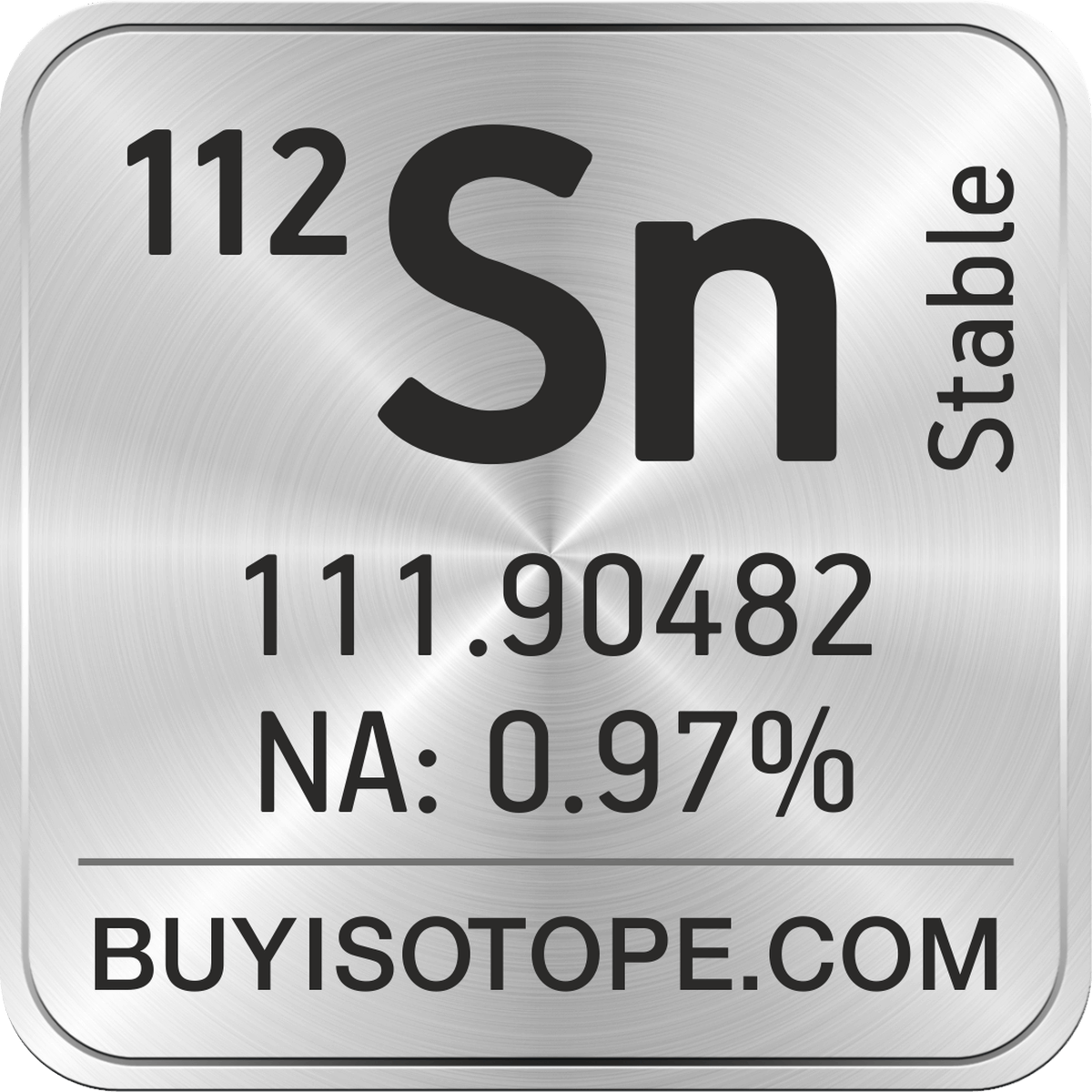112Sn isotope is available to order from BuyIsotope.com in 112Sn metal (Sn) chemical form. Please contact us via request a 112Sn quote BuyIsotope.com to order 112Sn isotope, to get 112Sn price and to buy 112Sn isotope.