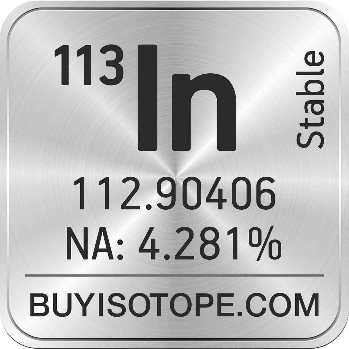 113In isotope is available to order from BuyIsotope.com in 113In metal (In) chemical form. Please contact us via request a 113In quote BuyIsotope.com to order 113In isotope, to get 113In price and to buy 113In isotope.