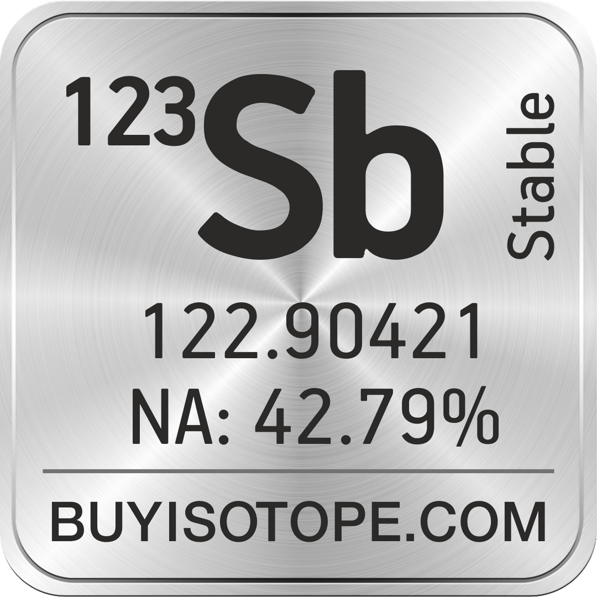 123Sb isotope is available to order from BuyIsotope.com in 123Sb metal (Sb) chemical form and in 123Sb oxide (Sb2O3) chemical form. Please contact us via request a 123Sb quote BuyIsotope.com to order 123Sb isotope, to get 123Sb price and to buy 123Sb isotope.