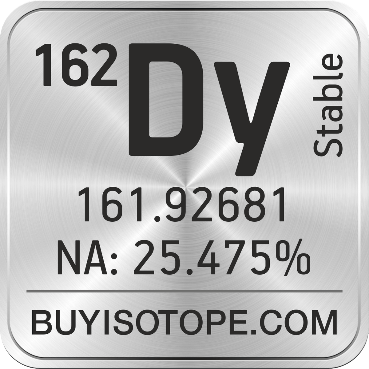 162Dy isotope is available to order from BuyIsotope.com in 162Dy oxide (Dy2O3) chemical form. Please contact us via request a 162Dy quote BuyIsotope.com to order 162Dy isotope, to get 162Dy price and to buy 162Dy isotope.