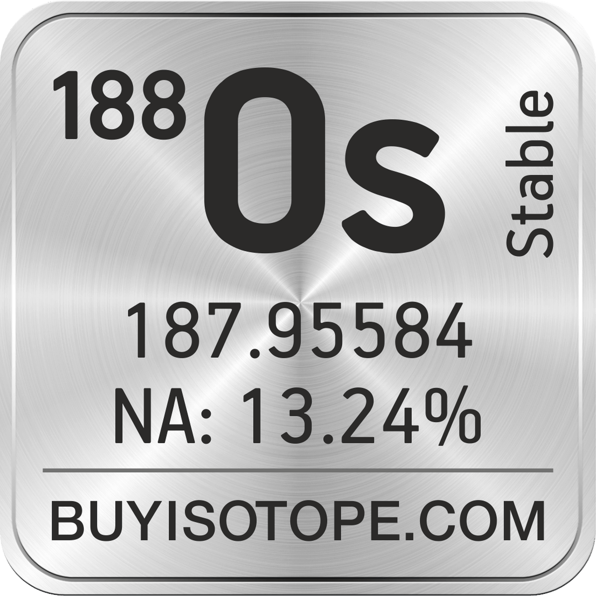 188Os isotope is available to order from BuyIsotope.com in 188Os metal (Os) chemical form. Please contact us via request a 188Os quote BuyIsotope.com to order 188Os isotope, to get 188Os price and to buy 188Os isotope.