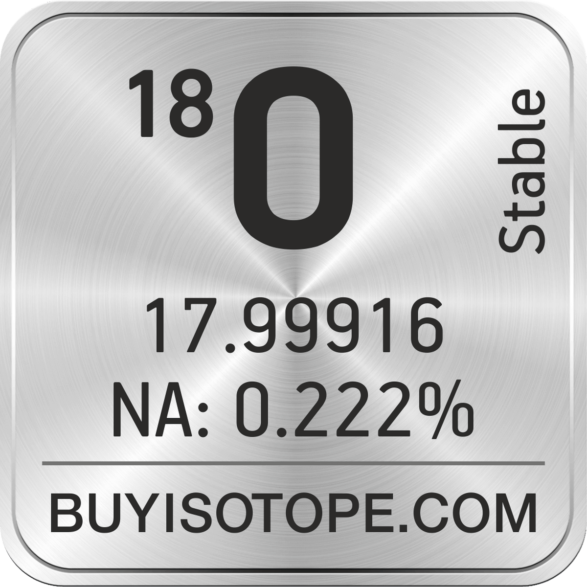 18O isotope is available to order from BuyIsotope.com in 18O water (H2O) chemical form and in 18O gas (O2) chemical form. Please contact us via request a 18O quote BuyIsotope.com to order 18O isotope, to get 18O price and to buy 18O isotope.