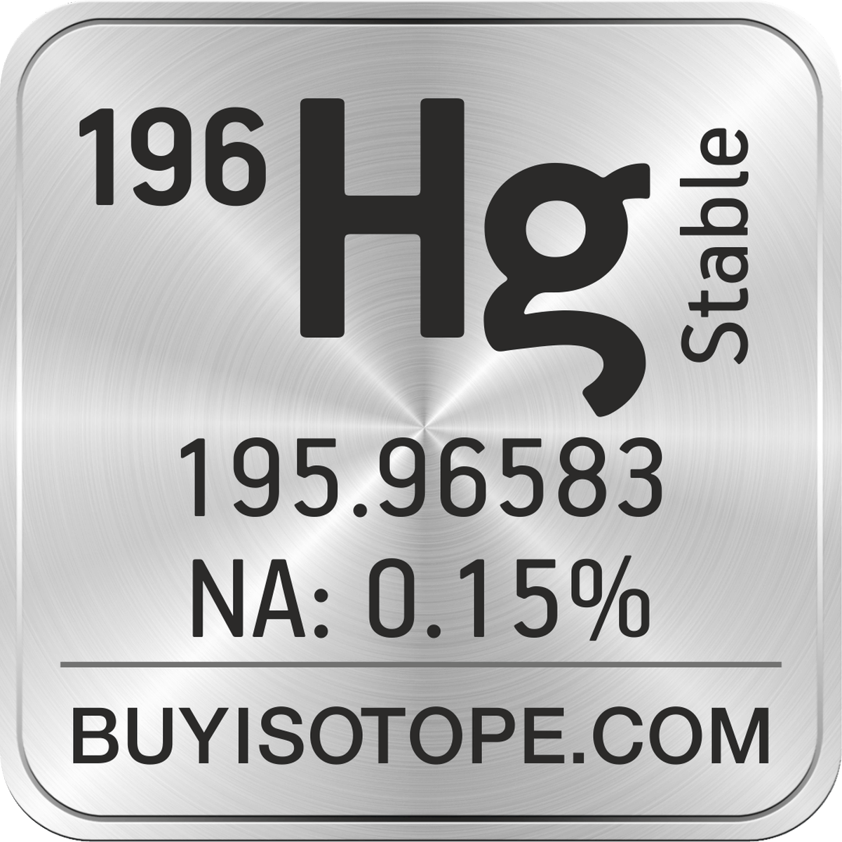 196Hg isotope is available to order from BuyIsotope.com in 196Hg metal (Hg) chemical form and in 196Hg oxide (HgO) chemical form. Please contact us via request a 196Hg quote BuyIsotope.com to order 196Hg isotope, to get 196Hg price and to buy 196Hg isotope.