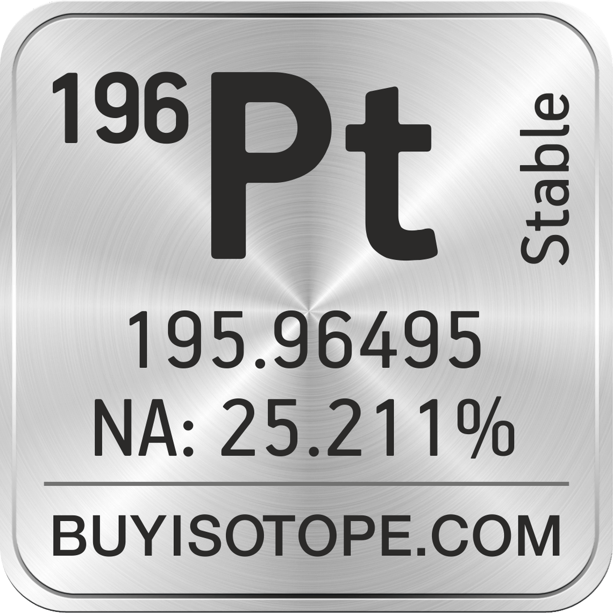 196Pt isotope is available to order from BuyIsotope.com in 196Pt metal foil (Pt) chemical form and in 196Pt metal powder (Pt) chemical form. Please contact us via request a 196Pt quote BuyIsotope.com to order 196Pt isotope, to get 196Pt price and to buy 196Pt isotope.