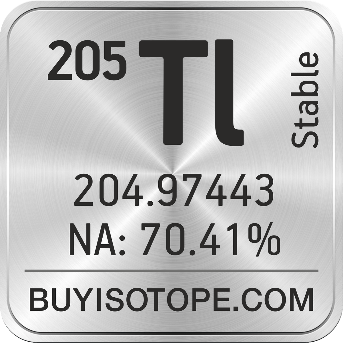 205Tl isotope is available to order from BuyIsotope.com in 205Tl metal (Tl) chemical form and in 205Tl oxide (Tl2O3) chemical form. Please contact us via request a 205Tl quote BuyIsotope.com to order 205Tl isotope, to get 205Tl price and to buy 205Tl isotope.