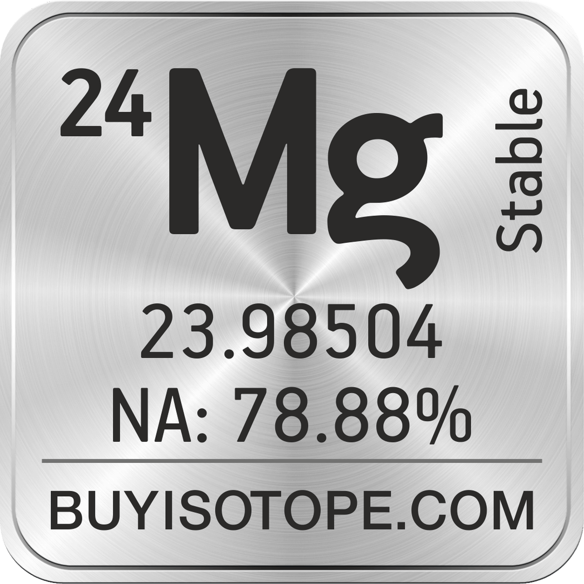 24Mg isotope is available to order from BuyIsotope.com in 24Mg oxide (MgO) chemical form and in 24Mg metal (Mg) chemical form. Please contact us via request a 24Mg quote BuyIsotope.com to order 24Mg isotope, to get 24Mg price and to buy 24Mg isotope.