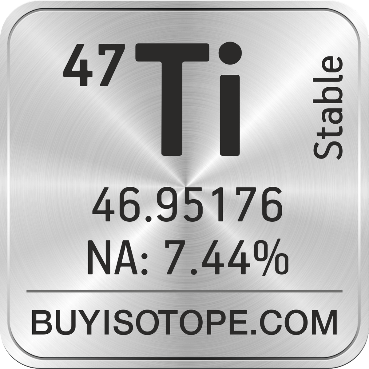 47Ti isotope is available to order from BuyIsotope.com in 47Ti metal powder (Ti) chemical form and in 47Ti oxide (TiO2) chemical form. Please contact us via request a 47Ti quote BuyIsotope.com to order 47Ti isotope, to get 47Ti price and to buy 47Ti isotope.