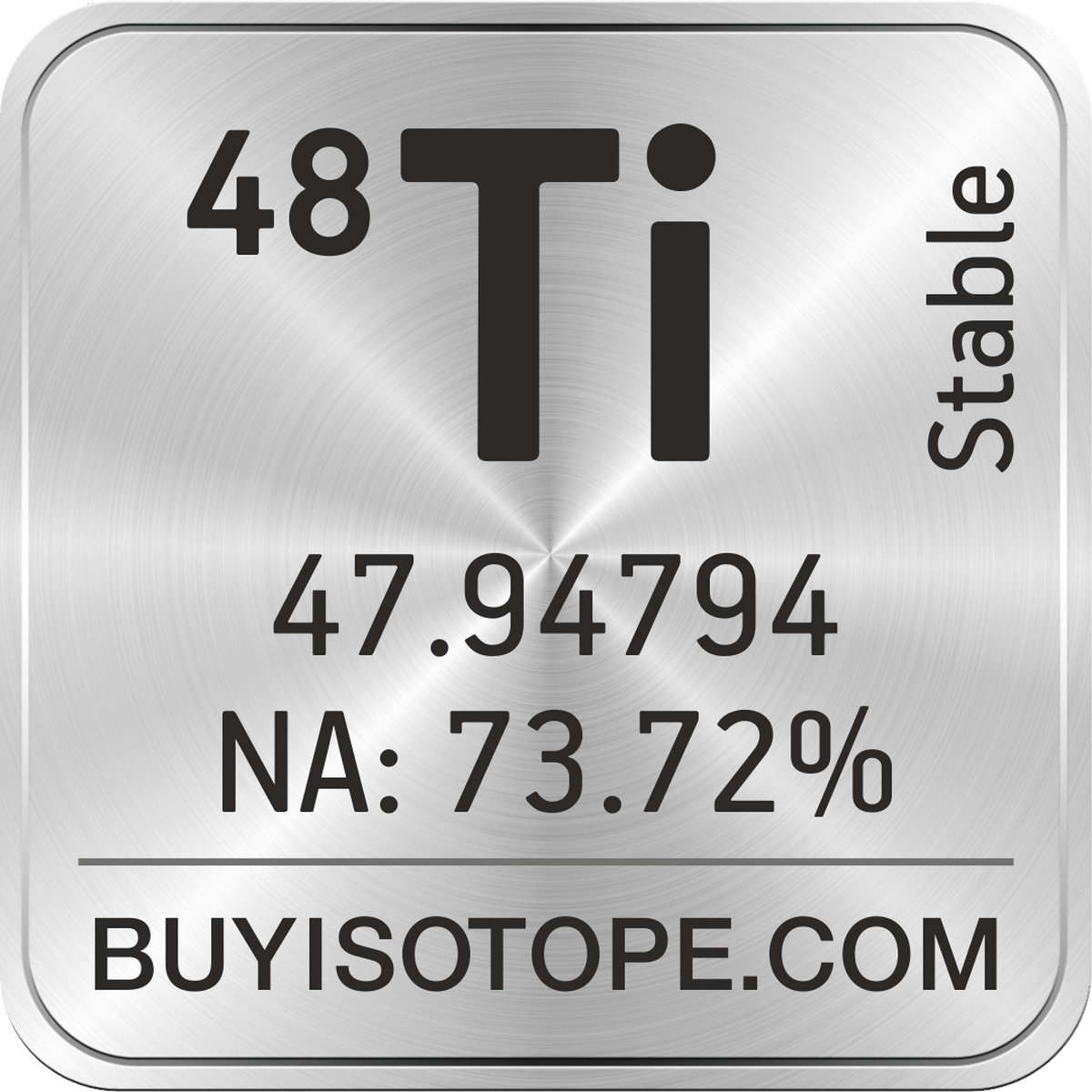 48Ti isotope is available to order from BuyIsotope.com in 48Ti metal powder (Ti) chemical form and in 48Ti oxide (TiO2) chemical form. Please contact us via request a 48Ti quote BuyIsotope.com to order 48Ti isotope, to get 48Ti price and to buy 48Ti isotope.