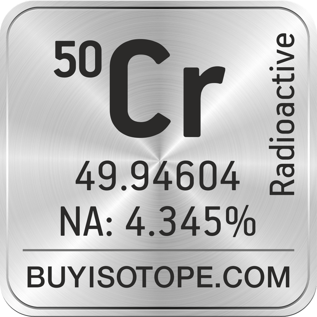 50Cr isotope is available to order from BuyIsotope.com in 50Cr metal (Cr) chemical form and in 50Cr oxide (Cr2O3) chemical form. Please contact us via request a 50Cr quote BuyIsotope.com to order 50Cr isotope, to get 50Cr price and to buy 50Cr isotope.