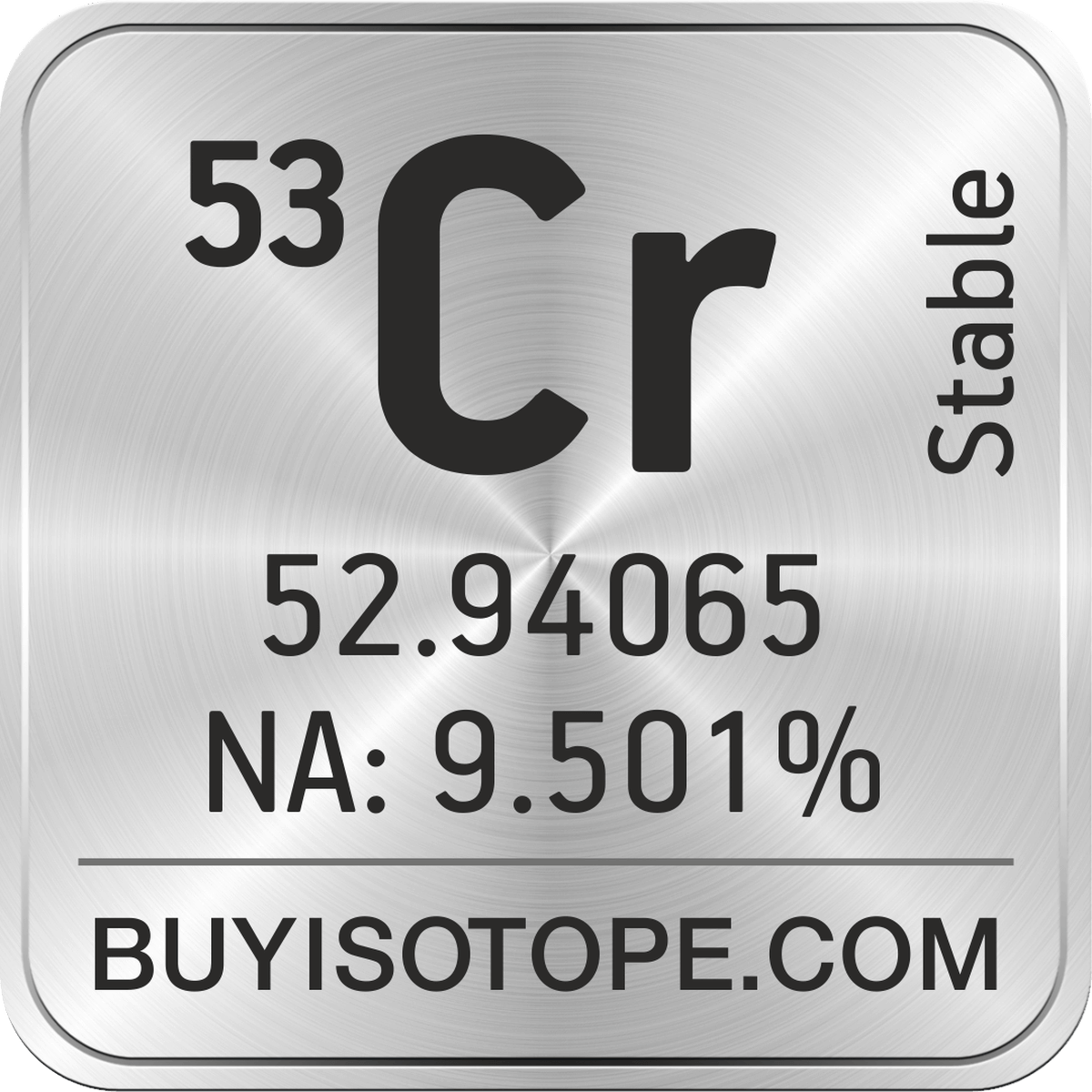 53Cr isotope is available to order from BuyIsotope.com in 53Cr metal (Cr) chemical form and in 53Cr oxide (Cr2O3) chemical form. Please contact us via request a 53Cr quote BuyIsotope.com to order 53Cr isotope, to get 53Cr price and to buy 53Cr isotope.
