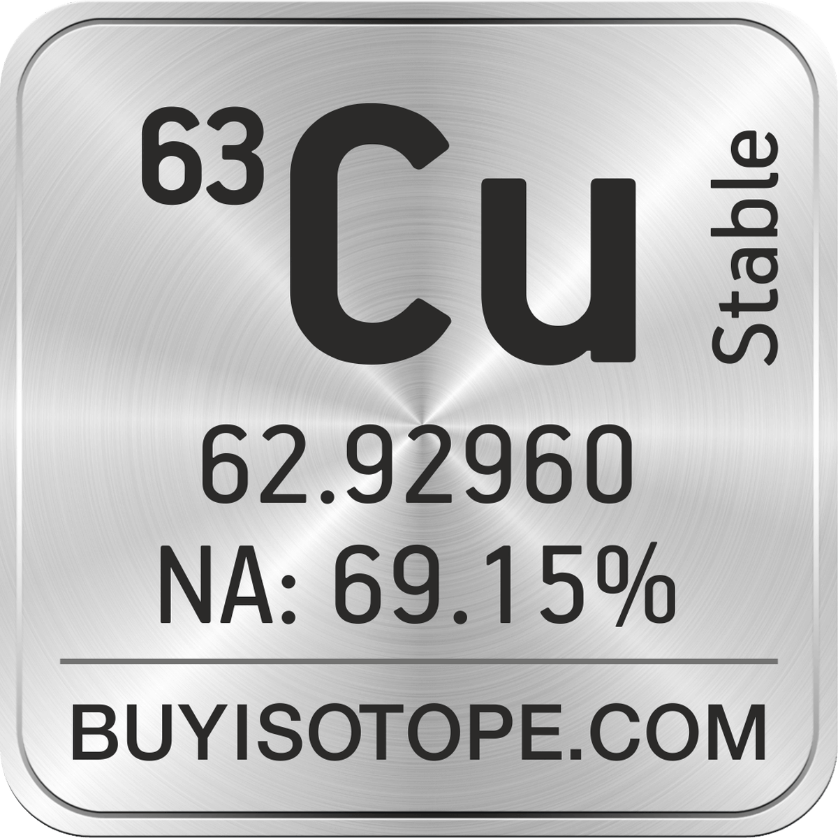 63Cu isotope is available to order from BuyIsotope.com in 63Cu metal (Cu) chemical form and in 63Cu oxide (CuO) chemical form. Please contact us via request a 63Cu quote BuyIsotope.com to order 63Cu isotope, to get 63Cu price and to buy 63Cu isotope.