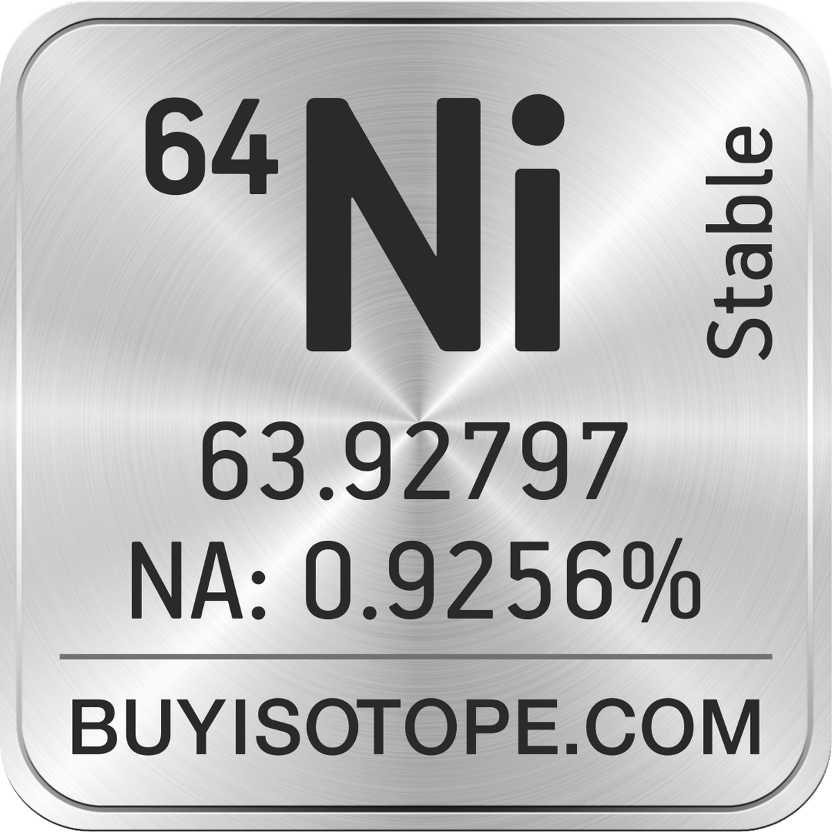 64Ni isotope is available to order from BuyIsotope.com in 64Ni metal powder (Ni) chemical form and in 64Ni oxide (NiO) chemical form. Please contact us via request a 64Ni quote BuyIsotope.com to order 64Ni isotope, to get 64Ni price and to buy 64Ni isotope.