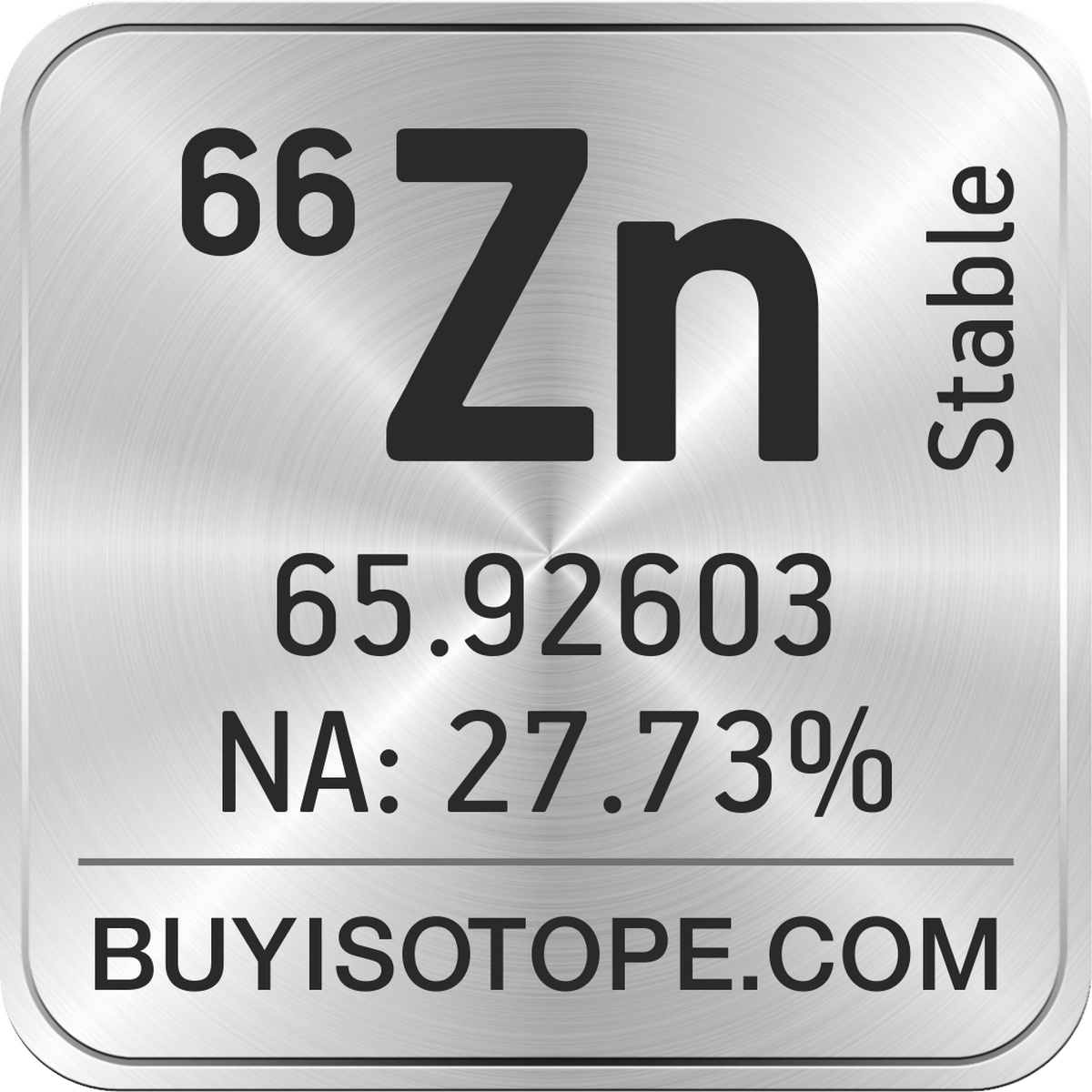 66Zn isotope is available to order from BuyIsotope.com in 66Zn metal powder (Zn) chemical form and in 66Zn oxide (ZnO) chemical form. Please contact us via request a 66Zn quote BuyIsotope.com to order 66Zn isotope, to get 66Zn price and to buy 66Zn isotope.
