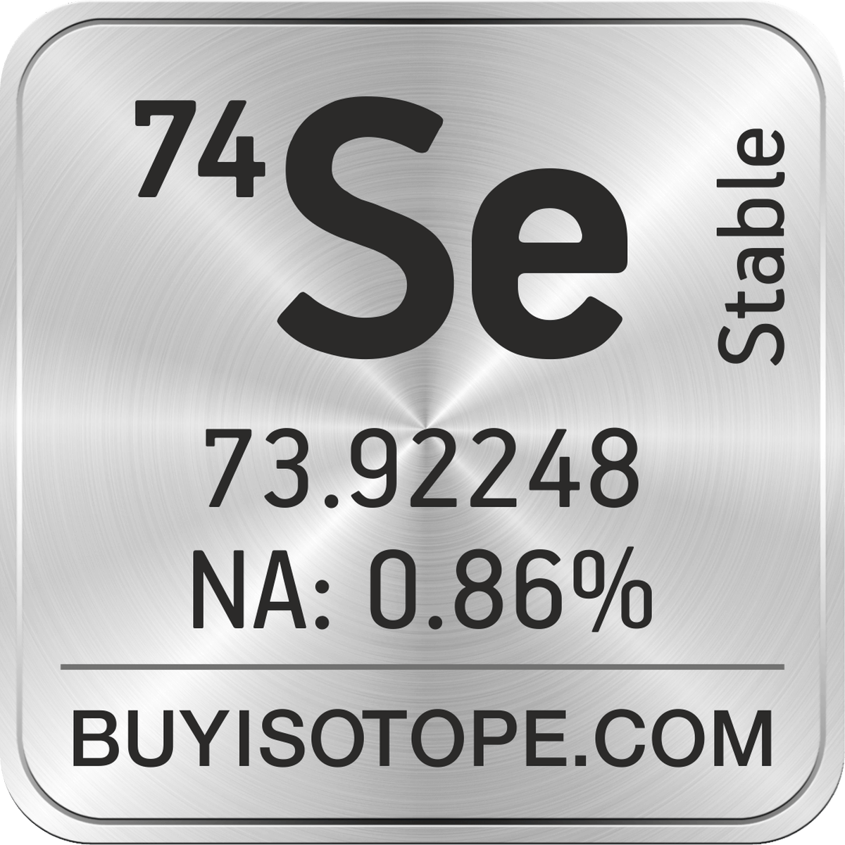74Se isotope is available to order from BuyIsotope.com in 74Se elemental (Se) chemical form. Please contact us via request a 74Se quote BuyIsotope.com to order 74Se isotope, to get 74Se price and to buy 74Se isotope.