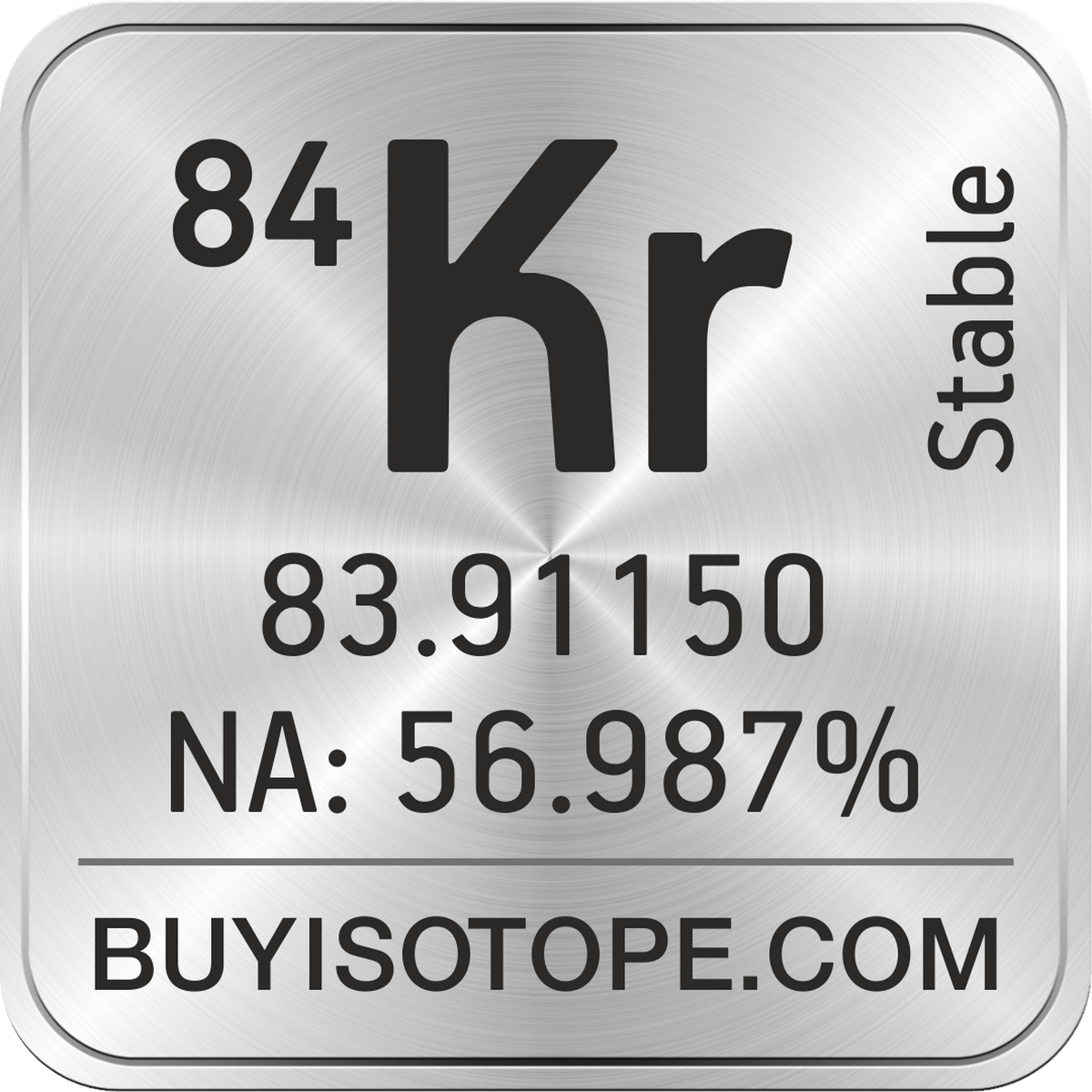 84Kr isotope is available to order from BuyIsotope.com in 84Kr gas (Kr) chemical form. Please contact us via request a 84Kr quote BuyIsotope.com to order 84Kr isotope, to get 84Kr price and to buy 84Kr isotope.