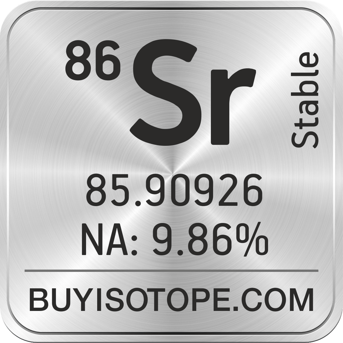 86Sr isotope is available to order from BuyIsotope.com in 86Sr carbonate (SrCO3) chemical form. Please contact us via request a 86Sr quote BuyIsotope.com to order 86Sr isotope, to get 86Sr price and to buy 86Sr isotope.