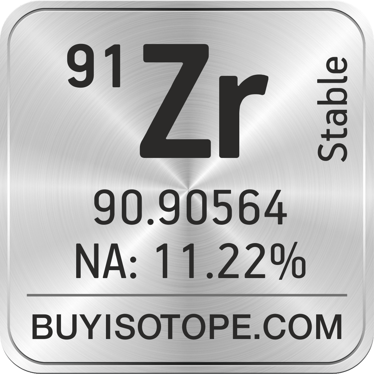 91Zr isotope is available to order from BuyIsotope.com in 91Zr metal powder (Zr) chemical form and in 91Zr oxide (ZrO2) chemical form. Please contact us via request a 91Zr quote BuyIsotope.com to order 91Zr isotope, to get 91Zr price and to buy 91Zr isotope.
