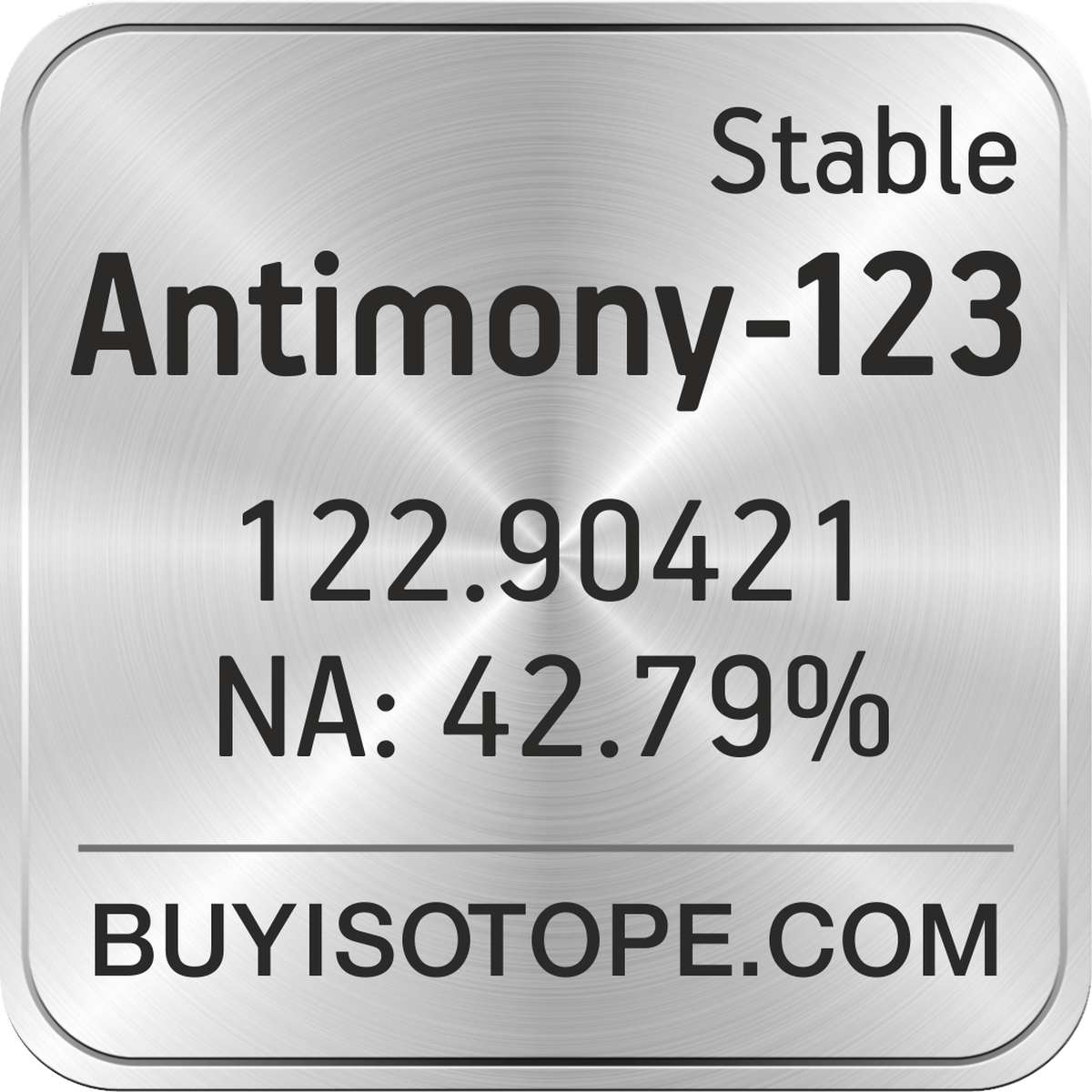 Antimony-123 isotope is available to order from BuyIsotope.com in Antimony-123 metal (Sb) chemical form and in Antimony-123 oxide (Sb2O3) chemical form. Please contact us via request a Antimony-123 quote BuyIsotope.com to order Antimony-123 isotope, to get Antimony-123 price and to buy Antimony-123 isotope.