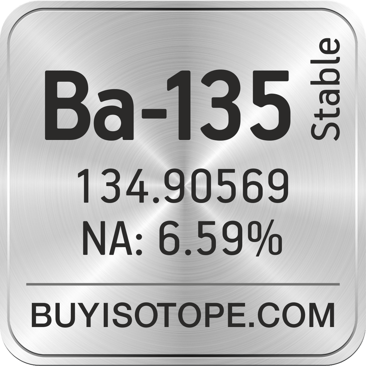 Ba-135 isotope is available to order from BuyIsotope.com in Ba-135 carbonate (BaCO3) chemical form. Please contact us via request a Ba-135 quote BuyIsotope.com to order Ba-135 isotope, to get Ba-135 price and to buy Ba-135 isotope.