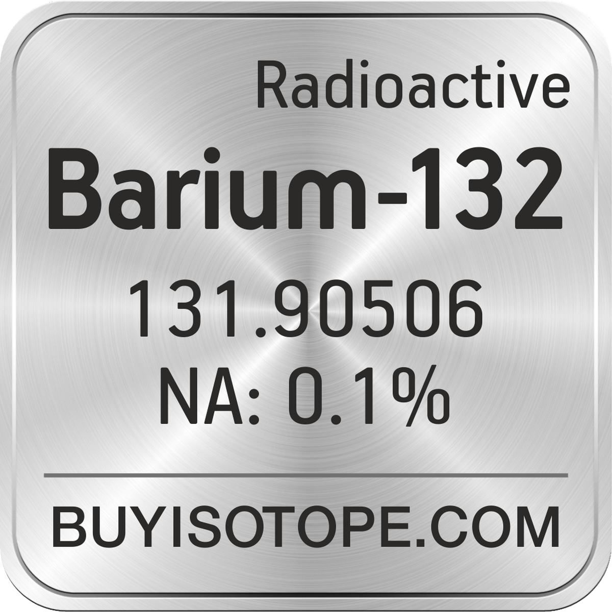 Barium-132 isotope is available to order from BuyIsotope.com in Barium-132 carbonate (BaCO3) chemical form. Please contact us via request a Barium-132 quote BuyIsotope.com to order Barium-132 isotope, to get Barium-132 price and to buy Barium-132 isotope.