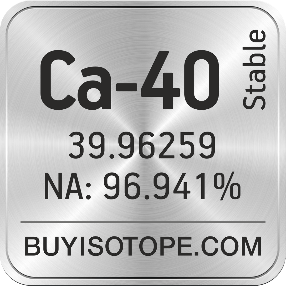 Ca-40 isotope is available to order from BuyIsotope.com in Ca-40 carbonate (CaCO3) chemical form and in Ca-40 oxide (CaO) chemical form. Please contact us via request a Ca-40 quote BuyIsotope.com to order Ca-40 isotope, to get Ca-40 price and to buy Ca-40 isotope.