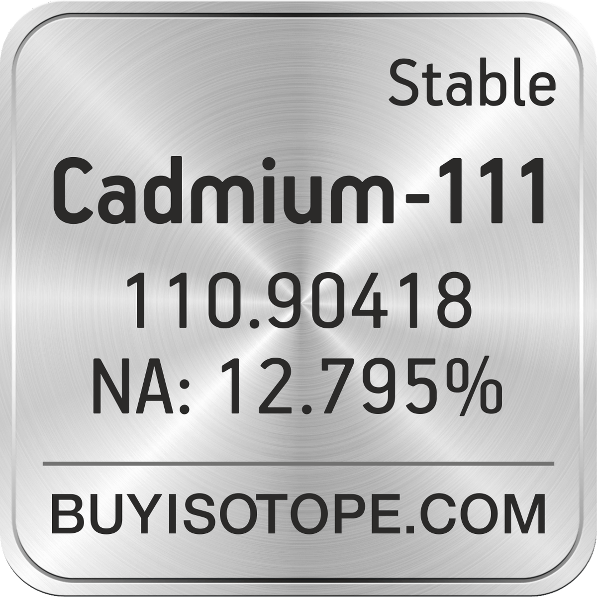 Cadmium-111 isotope is available to order from BuyIsotope.com in Cadmium-111 metal (Cd) chemical form and in Cadmium-111 oxide (CdO) chemical form. Please contact us via request a Cadmium-111 quote BuyIsotope.com to order Cadmium-111 isotope, to get Cadmium-111 price and to buy Cadmium-111 isotope.