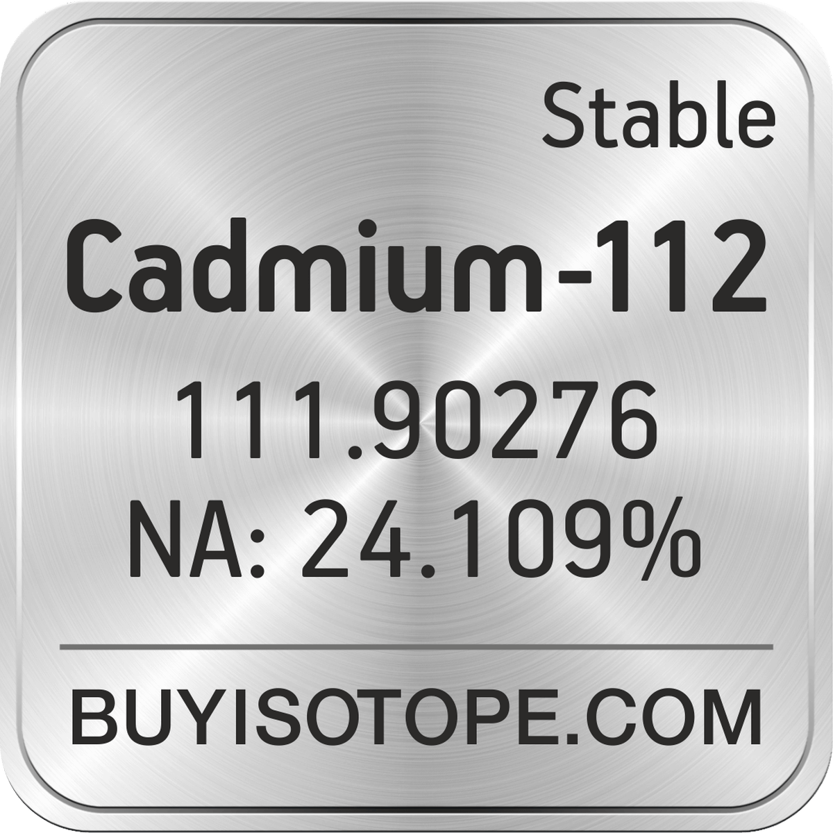 Cadmium-112 isotope is available to order from BuyIsotope.com in Cadmium-112 metal (Cd) chemical form and in Cadmium-112 oxide (CdO) chemical form. Please contact us via request a Cadmium-112 quote BuyIsotope.com to order Cadmium-112 isotope, to get Cadmium-112 price and to buy Cadmium-112 isotope.