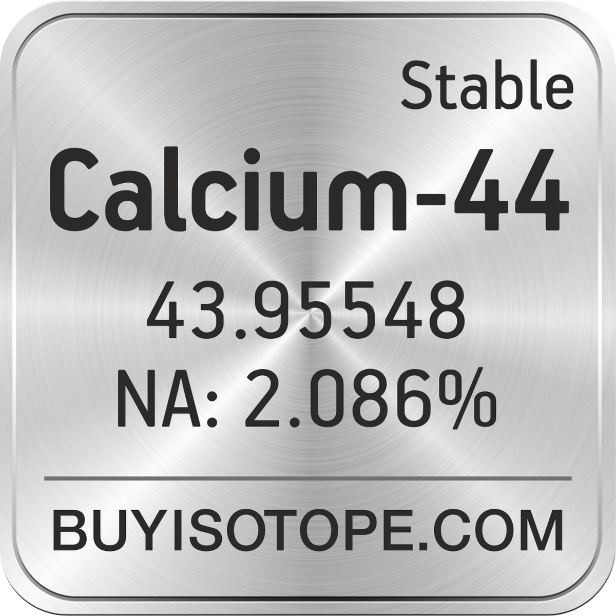 Calcium-44 isotope is available to order from BuyIsotope.com in Calcium-44 carbonate (CaCO3) chemical form and in Calcium-44 oxide (CaO) chemical form. Please contact us via request a Calcium-44 quote BuyIsotope.com to order Calcium-44 isotope, to get Calcium-44 price and to buy Calcium-44 isotope.