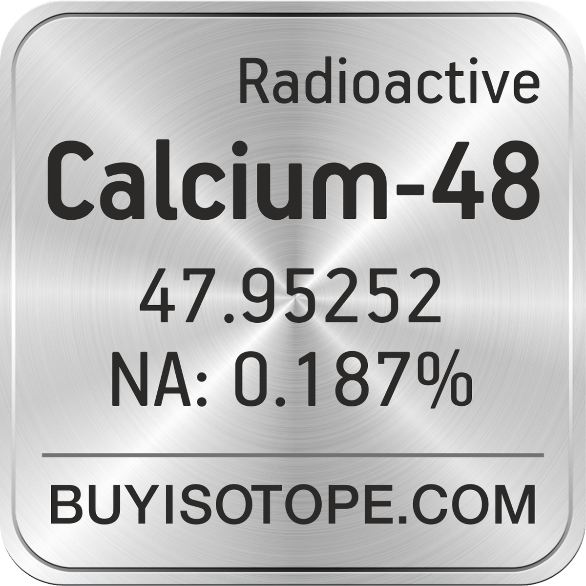 Calcium-48 isotope is available to order from BuyIsotope.com in Calcium-48 carbonate (CaCO3) chemical form and in Calcium-48 oxide (CaO) chemical form. Please contact us via request a Calcium-48 quote BuyIsotope.com to order Calcium-48 isotope, to get Calcium-48 price and to buy Calcium-48 isotope.