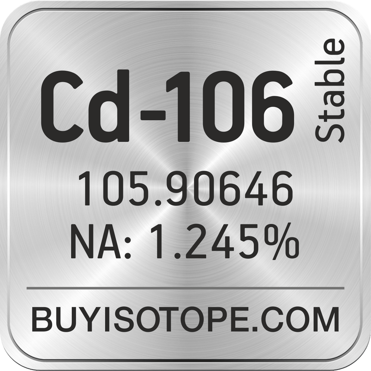 Cd-106 isotope is available to order from BuyIsotope.com in Cd-106 metal (Cd) chemical form and in Cd-106 oxide (CdO) chemical form. Please contact us via request a Cd-106 quote BuyIsotope.com to order Cd-106 isotope, to get Cd-106 price and to buy Cd-106 isotope.