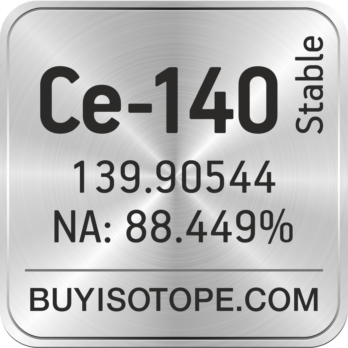 Ce-140 isotope is available to order from BuyIsotope.com in Ce-140 oxide (CeO2) chemical form. Please contact us via request a Ce-140 quote BuyIsotope.com to order Ce-140 isotope, to get Ce-140 price and to buy Ce-140 isotope.