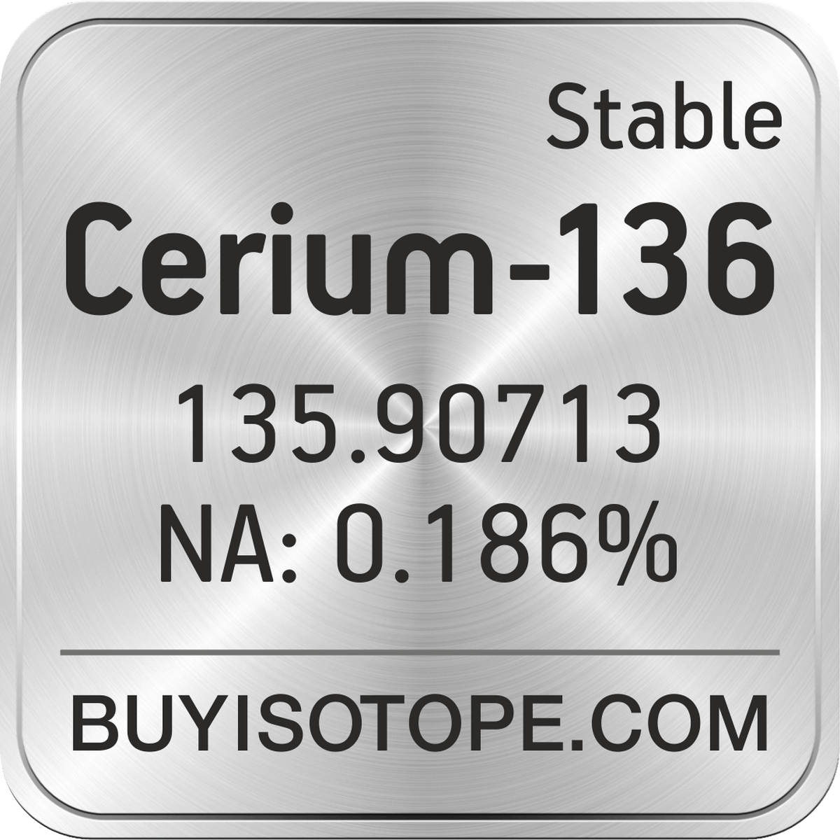 Cerium-136 isotope is available to order from BuyIsotope.com in Cerium-136 oxide (CeO2) chemical form. Please contact us via request a Cerium-136 quote BuyIsotope.com to order Cerium-136 isotope, to get Cerium-136 price and to buy Cerium-136 isotope.