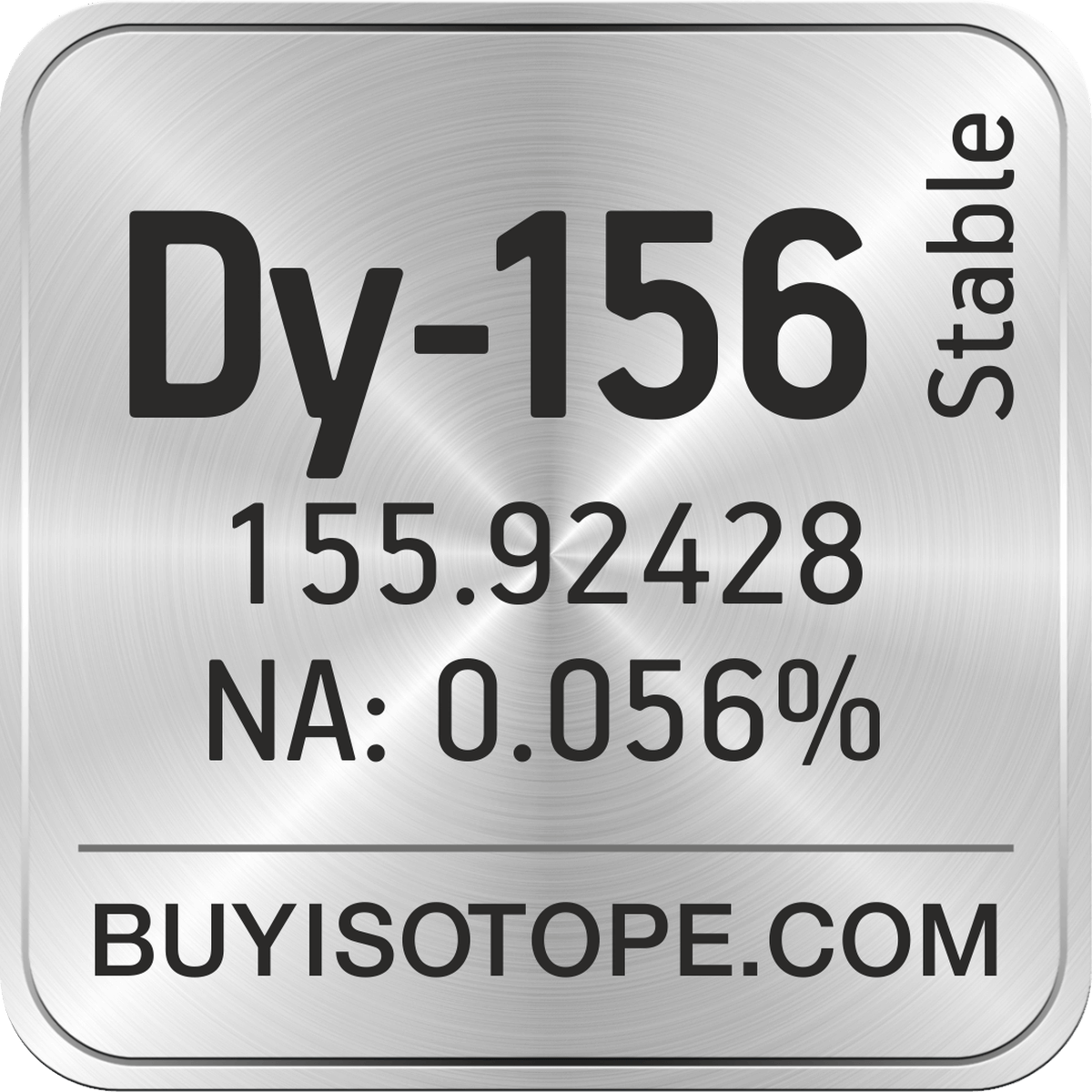 Dy-156 isotope is available to order from BuyIsotope.com in Dy-156 oxide (Dy2O3) chemical form. Please contact us via request a Dy-156 quote BuyIsotope.com to order Dy-156 isotope, to get Dy-156 price and to buy Dy-156 isotope.