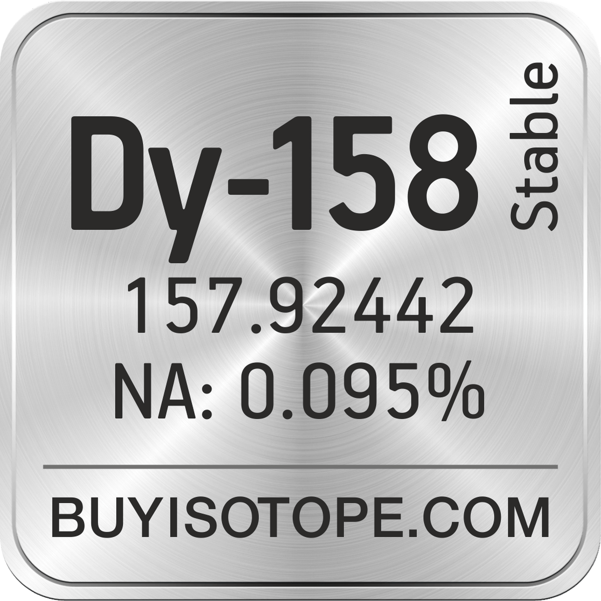 Dy-158 isotope is available to order from BuyIsotope.com in Dy-158 oxide (Dy2O3) chemical form. Please contact us via request a Dy-158 quote BuyIsotope.com to order Dy-158 isotope, to get Dy-158 price and to buy Dy-158 isotope.