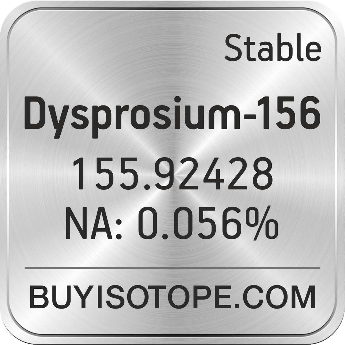 Dysprosium-156 isotope is available to order from BuyIsotope.com in Dysprosium-156 oxide (Dy2O3) chemical form. Please contact us via request a Dysprosium-156 quote BuyIsotope.com to order Dysprosium-156 isotope, to get Dysprosium-156 price and to buy Dysprosium-156 isotope.