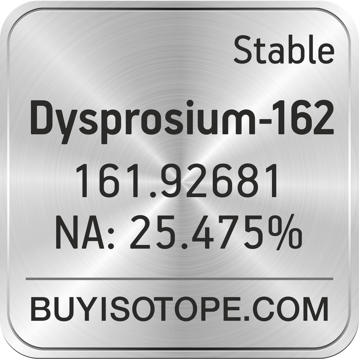 Dysprosium-162 isotope is available to order from BuyIsotope.com in Dysprosium-162 oxide (Dy2O3) chemical form. Please contact us via request a Dysprosium-162 quote BuyIsotope.com to order Dysprosium-162 isotope, to get Dysprosium-162 price and to buy Dysprosium-162 isotope.