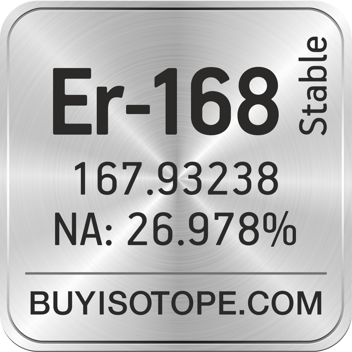 Er-168 isotope is available to order from BuyIsotope.com in Er-168 metal (Er) chemical form and in Er-168 oxide (Er2O3) chemical form. Please contact us via request a Er-168 quote BuyIsotope.com to order Er-168 isotope, to get Er-168 price and to buy Er-168 isotope.