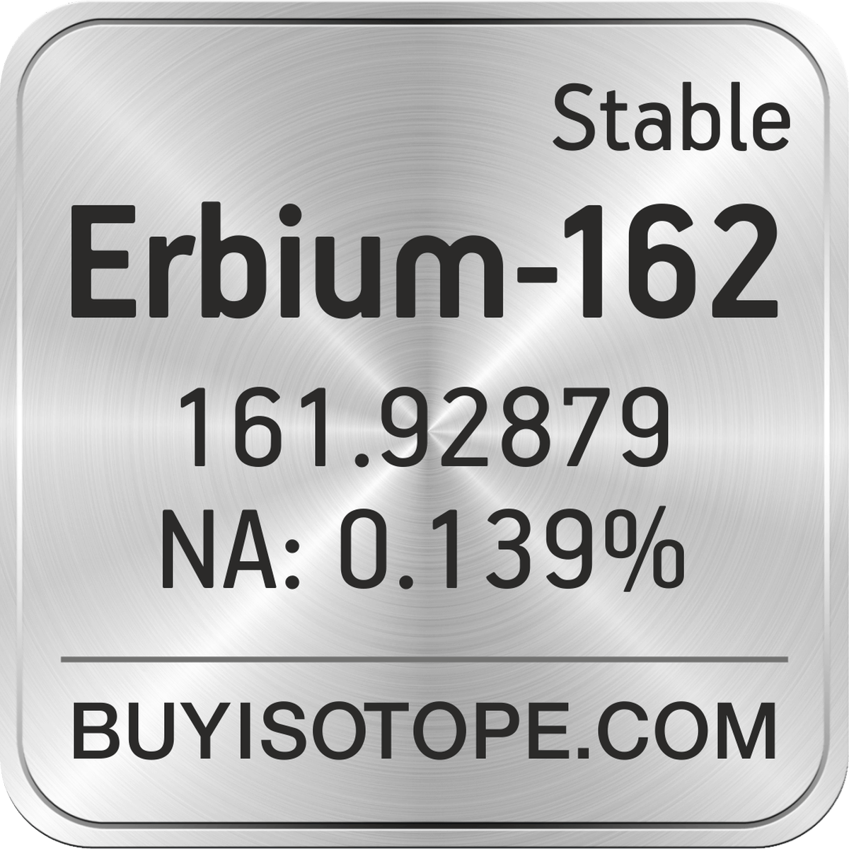 Erbium-162 isotope is available to order from BuyIsotope.com in Erbium-162 metal (Er) chemical form and in Erbium-162 oxide (Er2O3) chemical form. Please contact us via request a Erbium-162 quote BuyIsotope.com to order Erbium-162 isotope, to get Erbium-162 price and to buy Erbium-162 isotope.