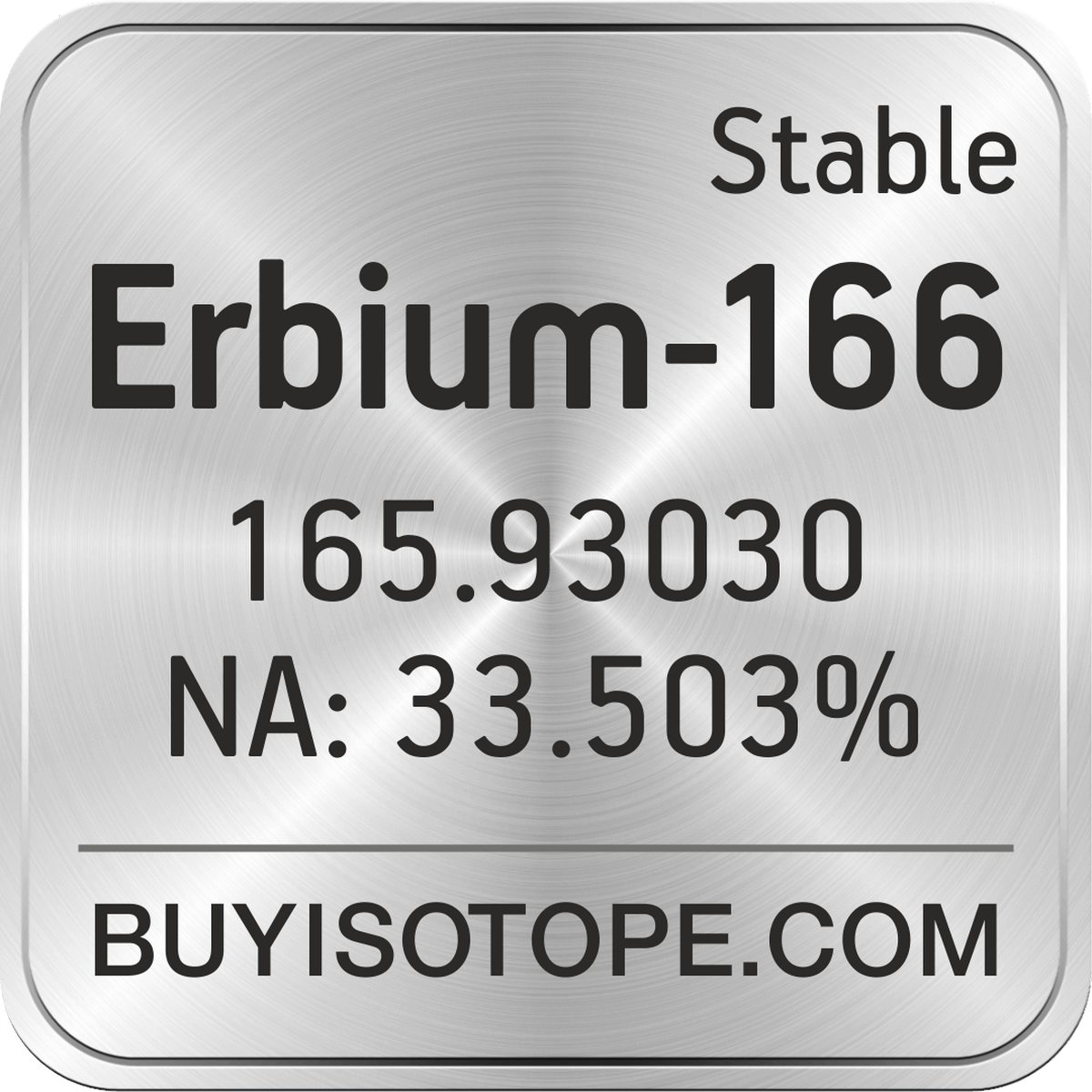 Erbium-166 isotope is available to order from BuyIsotope.com in Erbium-166 metal (Er) chemical form and in Erbium-166 oxide (Er2O3) chemical form. Please contact us via request a Erbium-166 quote BuyIsotope.com to order Erbium-166 isotope, to get Erbium-166 price and to buy Erbium-166 isotope.