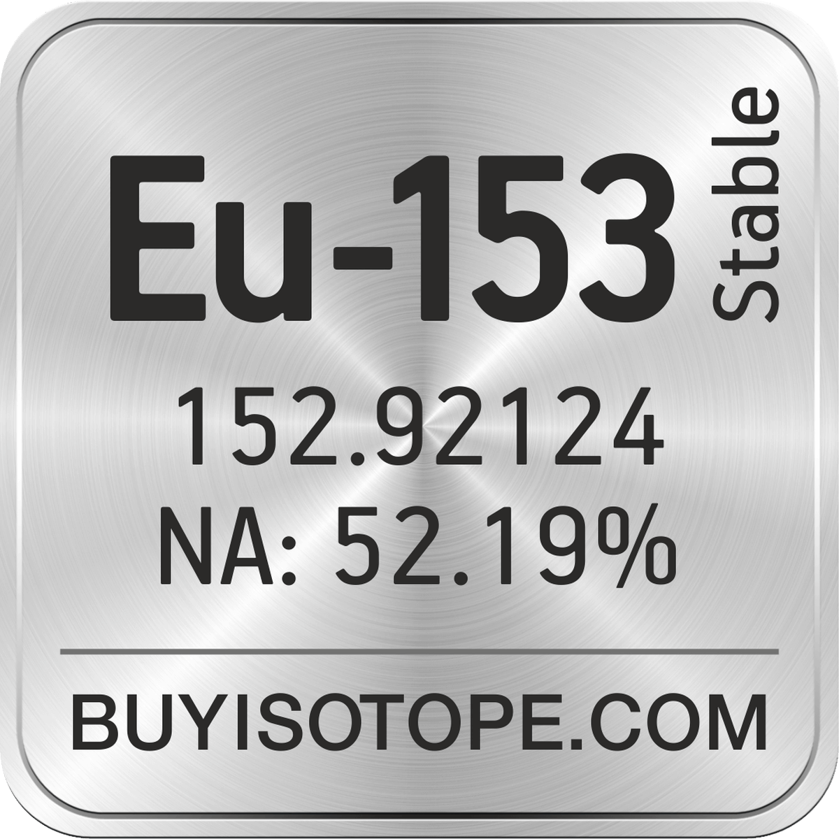 Eu-153 isotope is available to order from BuyIsotope.com in Eu-153 oxide (Eu2O3) chemical form. Please contact us via request a Eu-153 quote BuyIsotope.com to order Eu-153 isotope, to get Eu-153 price and to buy Eu-153 isotope.
