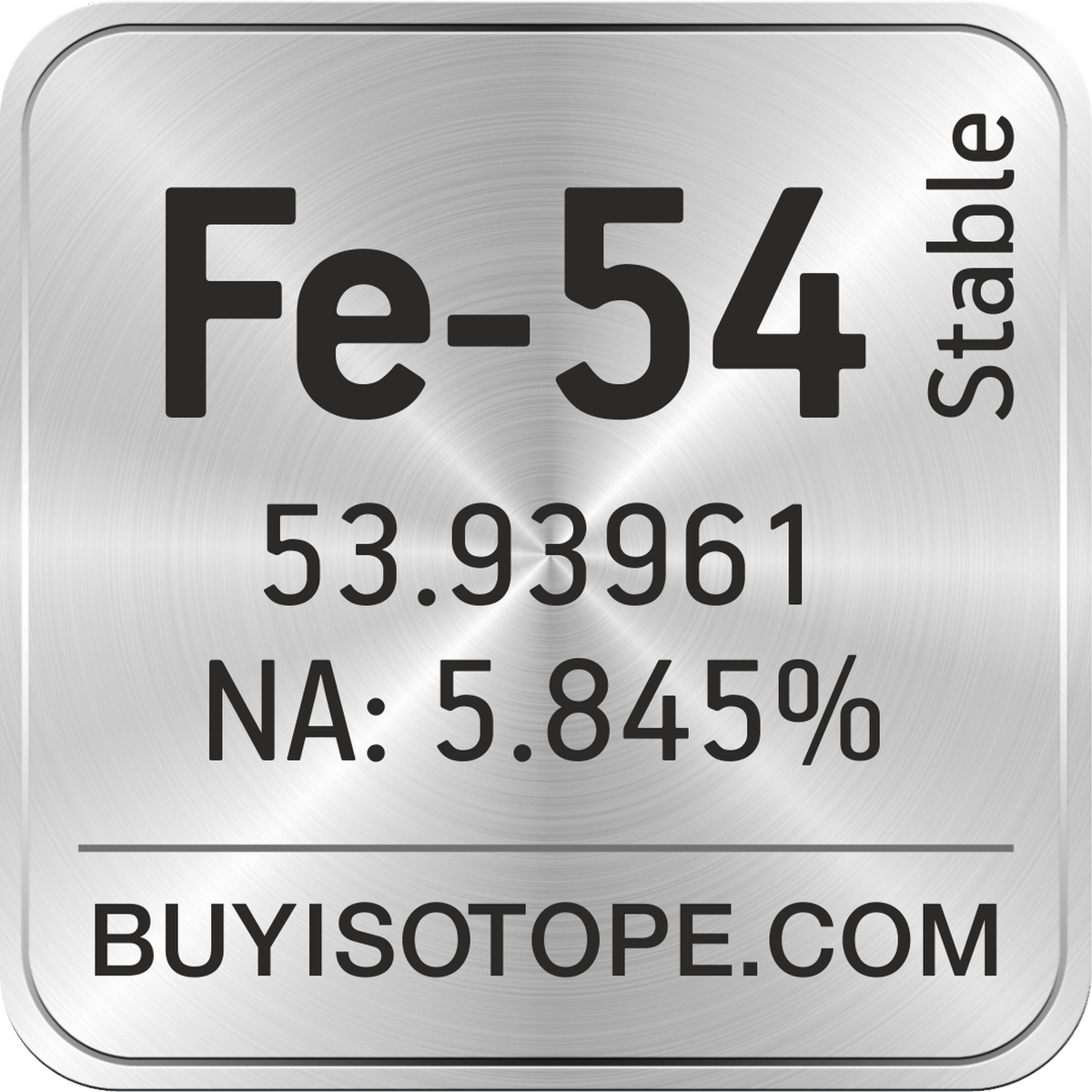 Fe-54 isotope is available to order from BuyIsotope.com in Fe-54 metal (Fe) chemical form and in Fe-54 oxide (Fe2O3) chemical form. Please contact us via request a Fe-54 quote BuyIsotope.com to order Fe-54 isotope, to get Fe-54 price and to buy Fe-54 isotope.