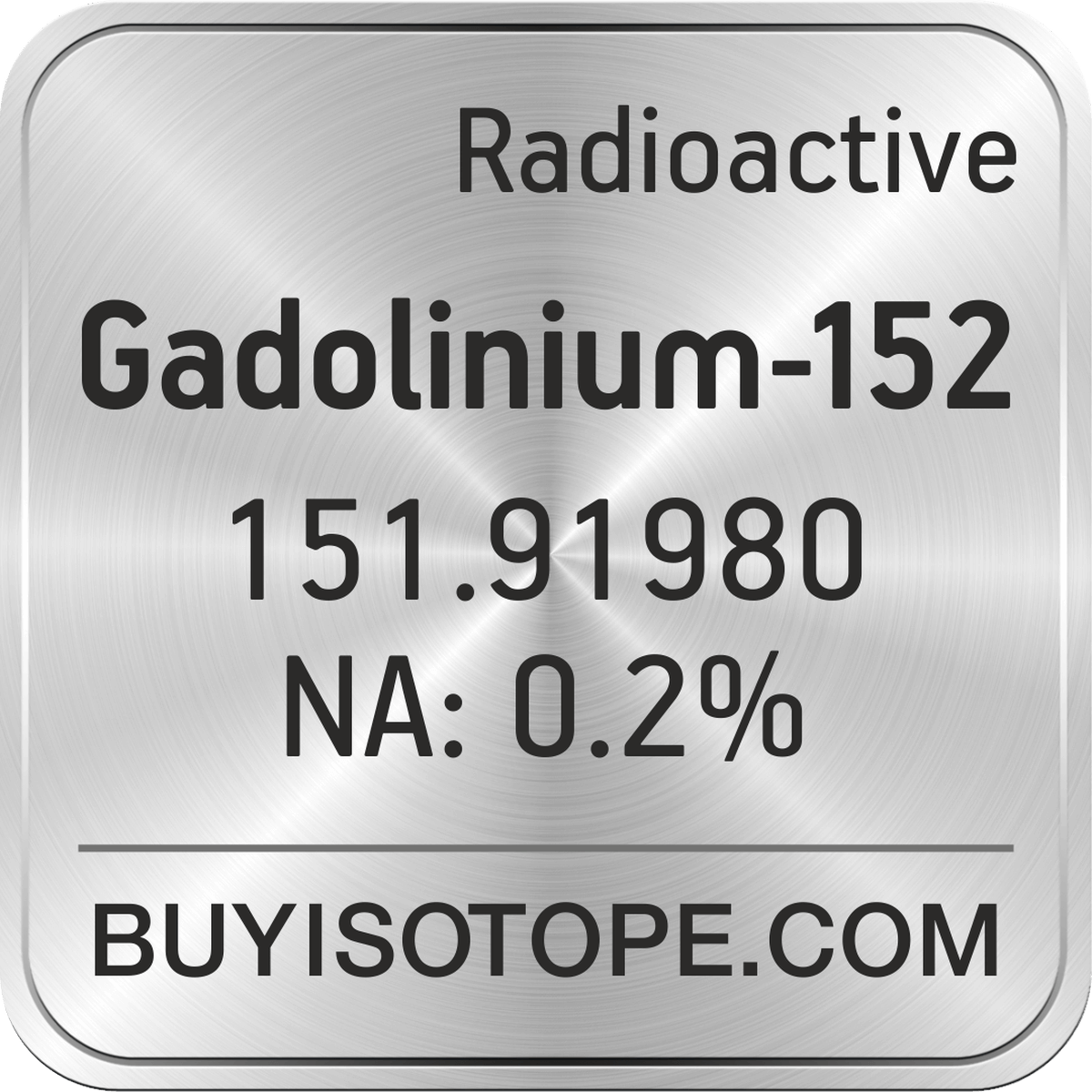 Gadolinium-152 isotope is available to order from BuyIsotope.com in Gadolinium-152 oxide (Gd2O3) chemical form and in Gadolinium-152 metal (Gd) chemical form. Please contact us via request a Gadolinium-152 quote BuyIsotope.com to order Gadolinium-152 isotope, to get Gadolinium-152 price and to buy Gadolinium-152 isotope.