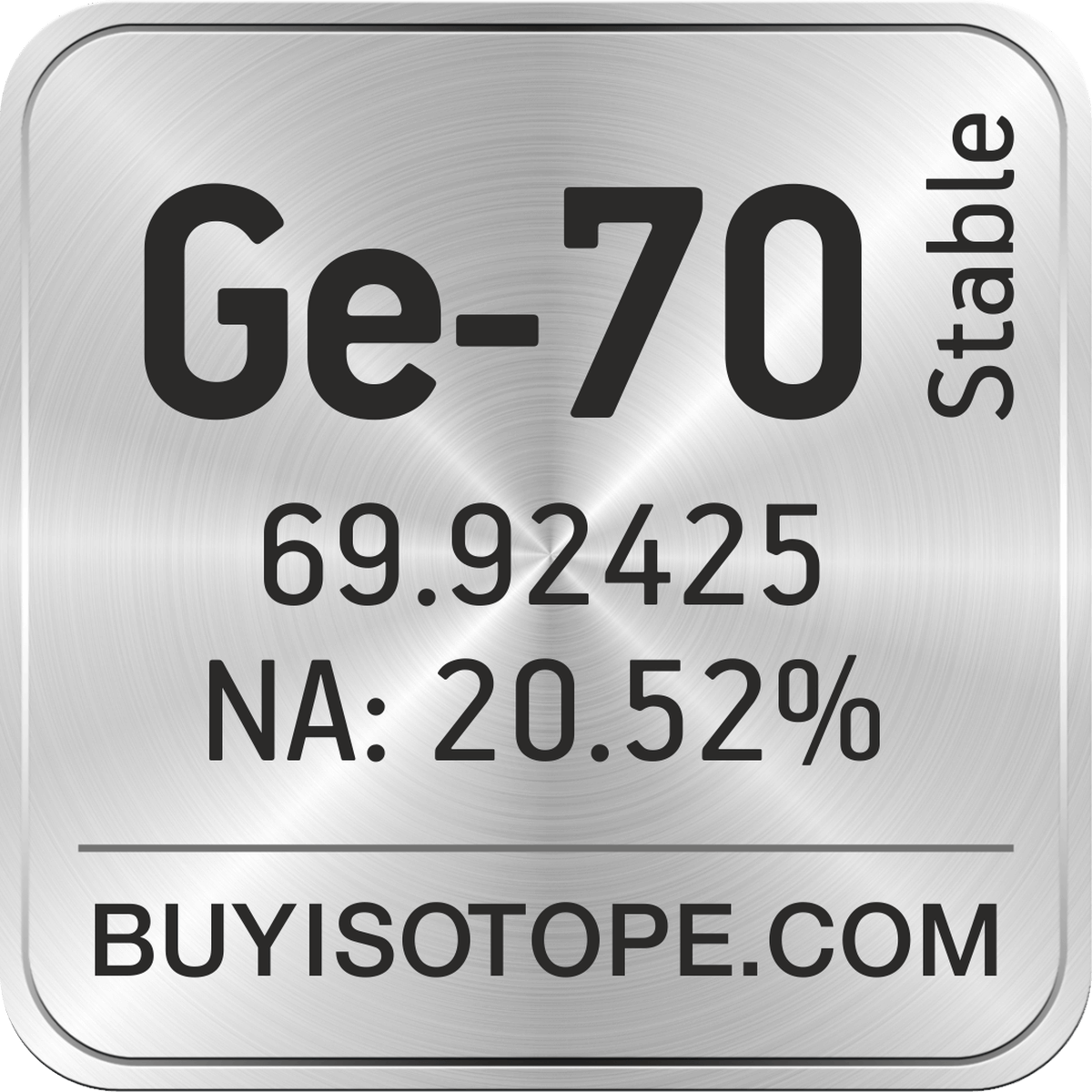 Ge-70 isotope is available to order from BuyIsotope.com in Ge-70 metal (Ge) chemical form and in Ge-70 oxide (GeO2) chemical form. Please contact us via request a Ge-70 quote BuyIsotope.com to order Ge-70 isotope, to get Ge-70 price and to buy Ge-70 isotope.