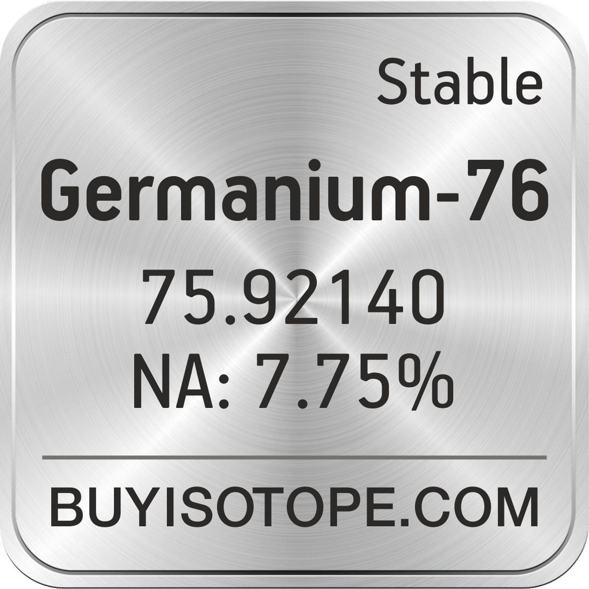 Germanium-76 isotope is available to order from BuyIsotope.com in Germanium-76 metal (Ge) chemical form and in Germanium-76 oxide (GeO2) chemical form. Please contact us via request a Germanium-76 quote BuyIsotope.com to order Germanium-76 isotope, to get Germanium-76 price and to buy Germanium-76 isotope.