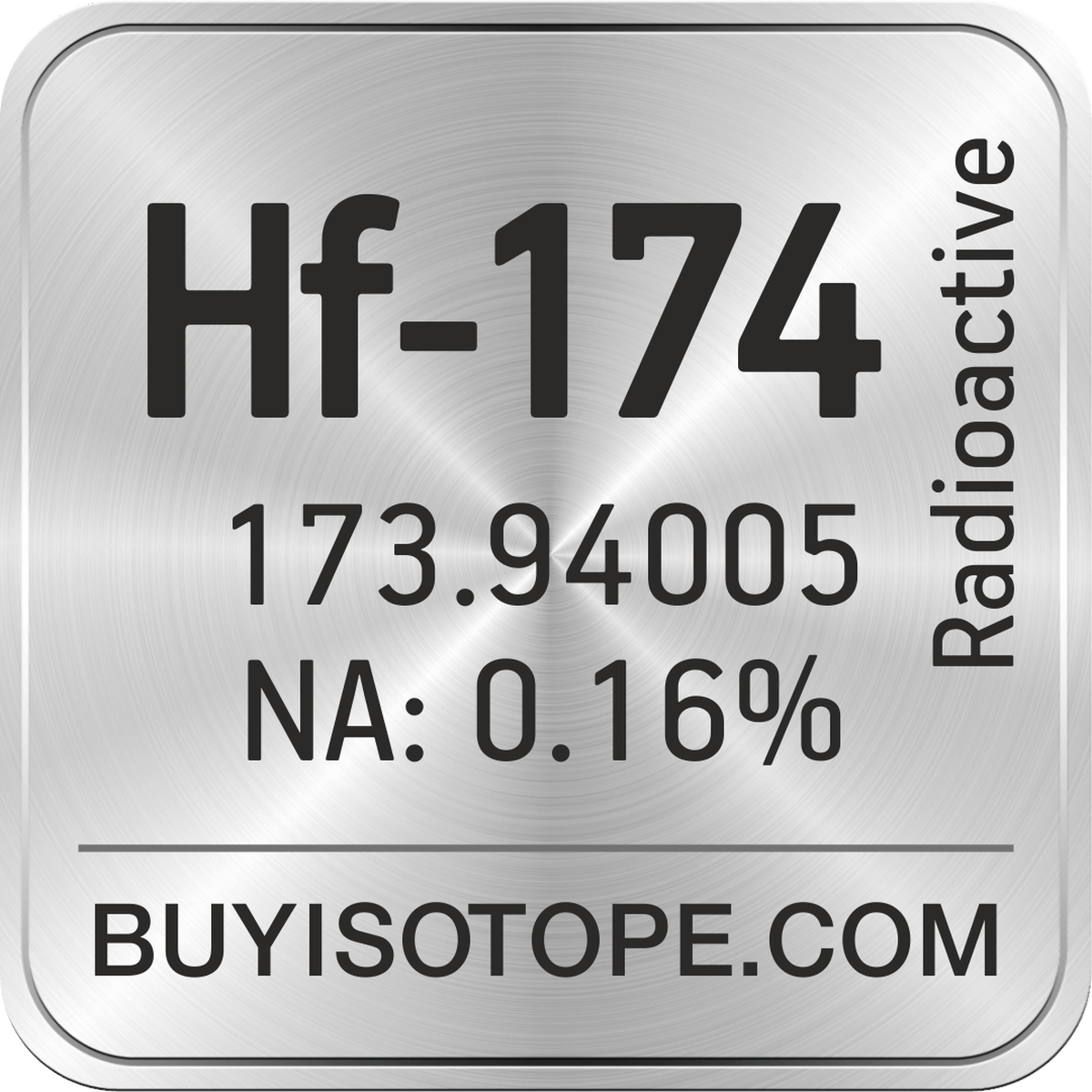 Hf-174 isotope is available to order from BuyIsotope.com in Hf-174 oxide (HfO2) chemical form. Please contact us via request a Hf-174 quote BuyIsotope.com to order Hf-174 isotope, to get Hf-174 price and to buy Hf-174 isotope.