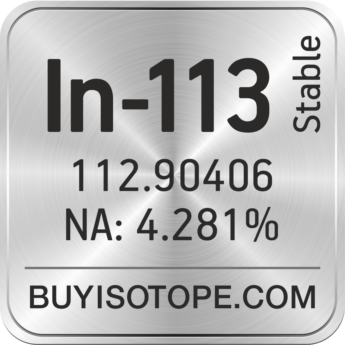 In-113 isotope is available to order from BuyIsotope.com in In-113 metal (In) chemical form. Please contact us via request a In-113 quote BuyIsotope.com to order In-113 isotope, to get In-113 price and to buy In-113 isotope.