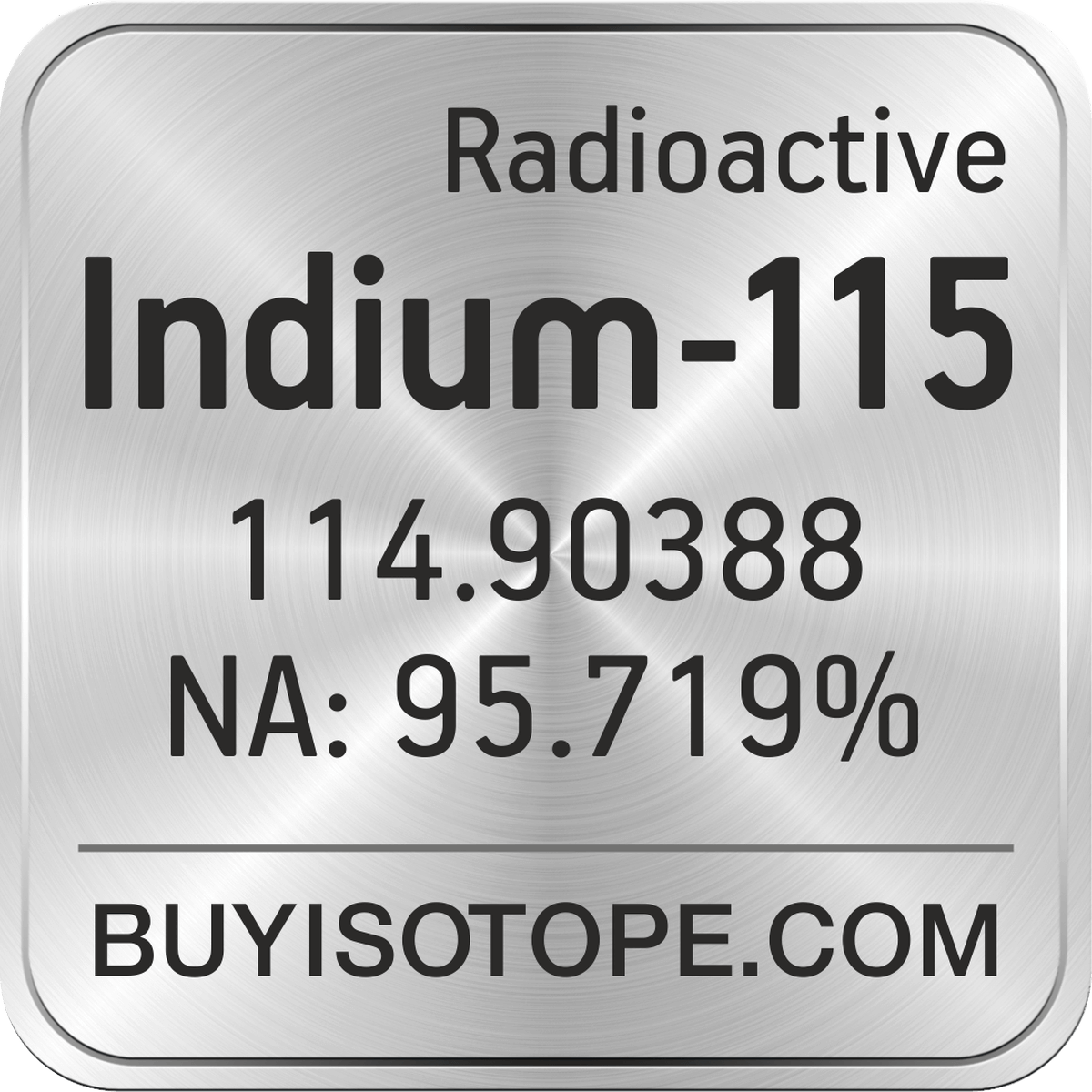 Indium-115 isotope is available to order from BuyIsotope.com in Indium-115 metal (In) chemical form. Please contact us via request a Indium-115 quote BuyIsotope.com to order Indium-115 isotope, to get Indium-115 price and to buy Indium-115 isotope.