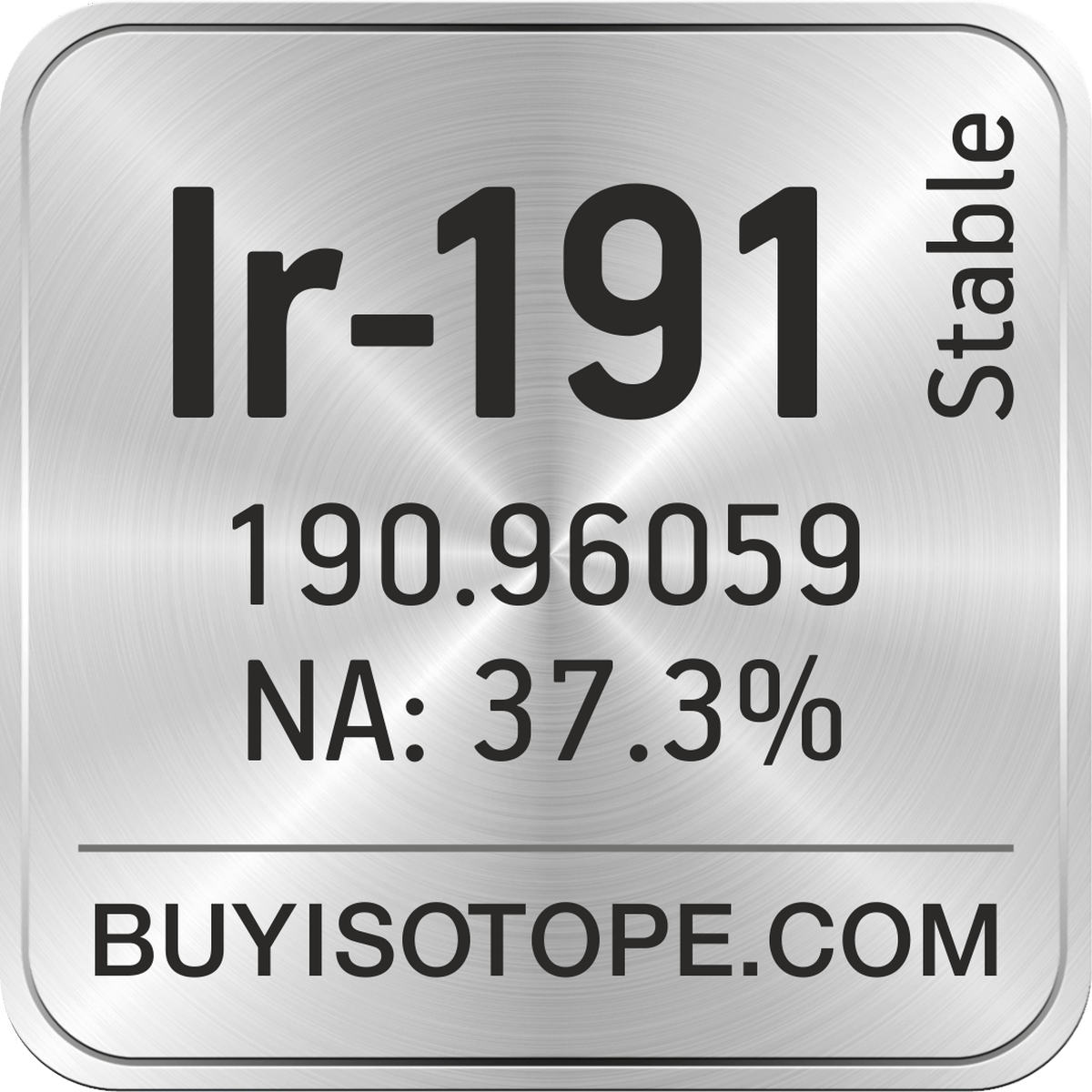 Ir-191 isotope is available to order from BuyIsotope.com in Ir-191 metal (Ir) chemical form. Please contact us via request a Ir-191 quote BuyIsotope.com to order Ir-191 isotope, to get Ir-191 price and to buy Ir-191 isotope.