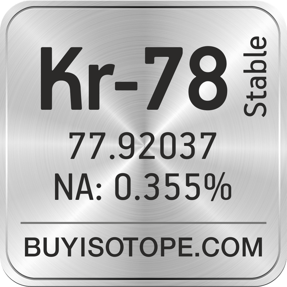 Kr-78 isotope is available to order from BuyIsotope.com in Kr-78 gas (Kr) chemical form. Please contact us via request a Kr-78 quote BuyIsotope.com to order Kr-78 isotope, to get Kr-78 price and to buy Kr-78 isotope.